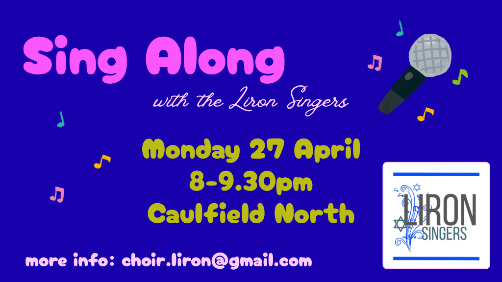 Since its inception, Liron has regularly entertained the residents of the Montefiore Homes for the Aged and The Emmy Monash Homes. Some of the choir members also performed at the ‘Tuesday Club’ at Kadimah in Elsternwick.